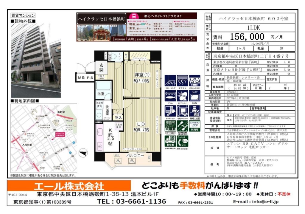 浜町駅徒歩4分、人形町駅徒歩5分、水天宮前駅徒歩6分の利便性の良さ。49㎡の広さでこの家賃はなかなか募集になりませんよ♪近くに24時間スーパー、ドラッグストア、コンビニ全て揃ってます。新婚、カップルにオススメです!
