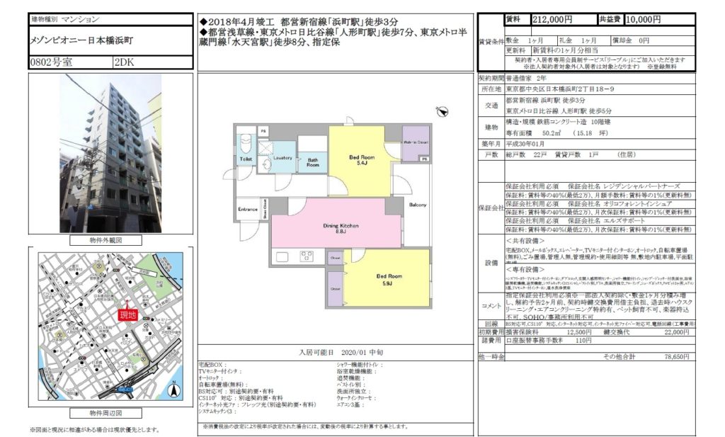 都営新宿線浜町駅徒歩3分の築2年のマンション。50㎡以上あるのでプライベートが確保できます。新婚、カップル、兄弟姉妹でお住まいをお探しの方にオススメです。お部屋は綺麗ですよ!