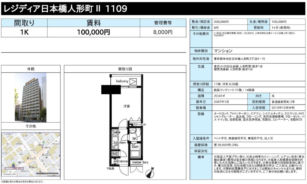 人形町駅徒歩1分の1K手出ました!